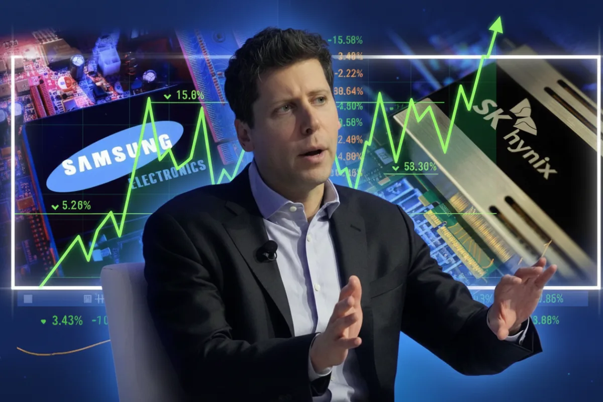 South Korean chip stocks spiked Thursday after news of OpenAI’s agreements with Samsung and SK Hynix to supply memory for the Stargate AI build — with Samsung rising roughly 4–5% and SK Hynix leaping into multi-year highs amid heavy trading.